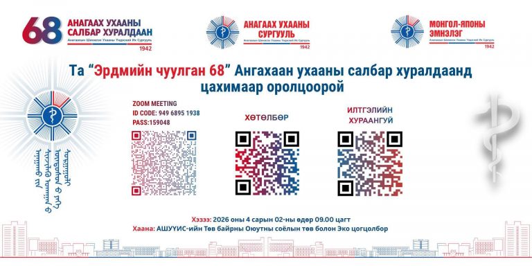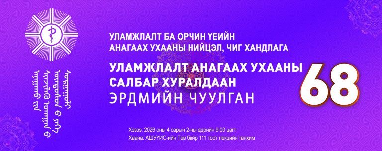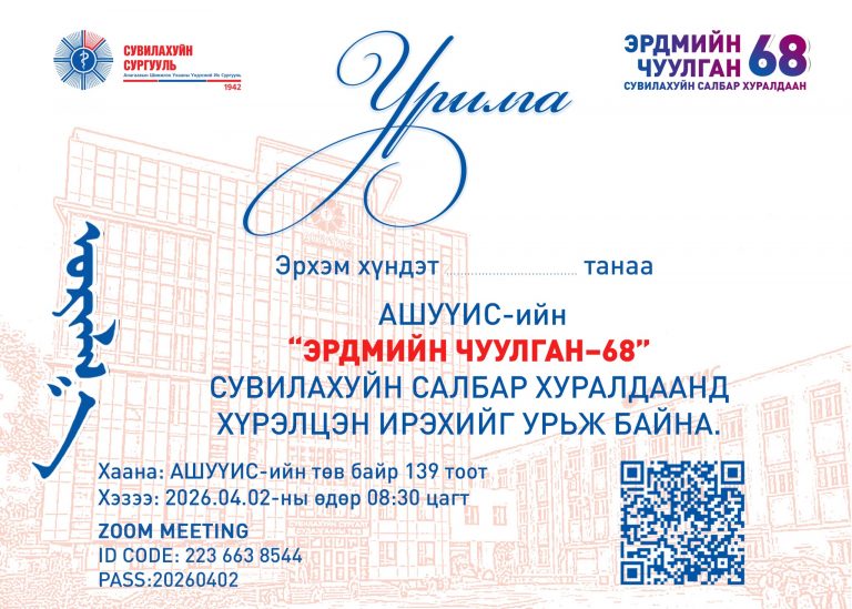 МЭДЭЭ, Мэдээ “ЭРДМИЙН ЧУУЛГАН-68” НҮҮР АМ СУДЛАЛЫН САЛБАР ХУРАЛДААНД ХҮРЭЛЦЭН ИРЭХИЙГ УРЬЖ БАЙНА Хэзээ: 2026.04.02-ны Пүрэв гараг 08:30-15:30 Хаана: АШУҮИС-ийн Төв байр 140 лекцийн танхим Battsetseg DMarch 31, 2026