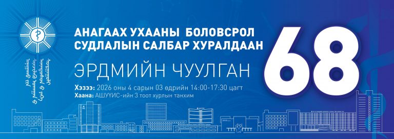 ЭРХЭМ ХҮНДЭТ ЭРДЭМТЭН БАГШ, СУДЛААЧ, ЭМЧ, ЭМНЭЛГИЙН МЭРГЭЖИЛТЭН, АЖИЛТАН, АЛБАН ХААГЧИД ТА БҮХНИЙГ АШУҮИС-ИЙН “ЭРДМИЙН ЧУУЛГАН-68” АНАГААХ УХААНЫ БОЛОВСРОЛ СУДЛАЛЫН САЛБАР ХУРАЛДААНД ХҮРЭЛЦЭН ИРЭХИЙГ УРЬЖ БАЙНА