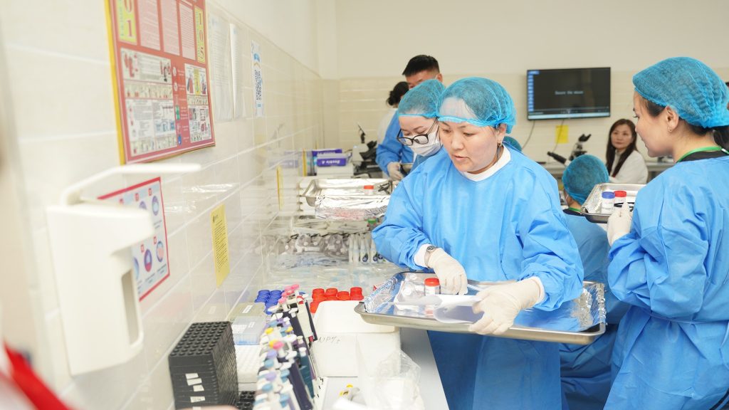 АШУҮИС-ийн Био-Анагаахын Хүрээлэн, Био-Анагаахын сургуулийн лабораторит молекул, эс, эдийн шинжилгээ, амьтны туршилт судалгаа зэрэг дөрвөн төрлийн өртөөгөөр зохион байгуулсан “Дадлага ажил”-д Монгол улсын 21 аймаг, нийслэл хотын ерөнхий боловсролын сургуулиуд дундаас гурвын даваанд шалгарсан 34 багш оролцож, өртөө тус бүрийн даалгавруудыг гүйцэтгэж, эрдэм мэдлэг, ур чадвар, авхаалж самбаагаар өрсөлдлөө.