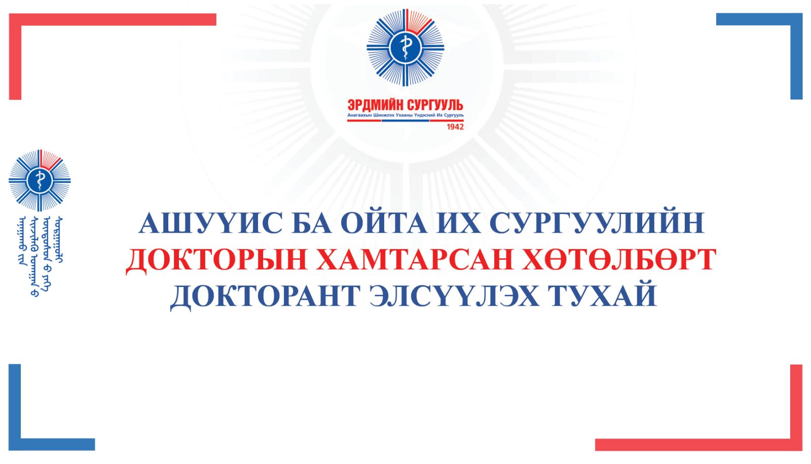 Анагаахын Шинжлэх Ухааны Үндэсний Их Сургууль ба Японы Ойта Их Сургуулийн хамтын ажиллагааны гэрээний дагуу Докторын хамтарсан хөтөлбөрт АШУҮИС-ийн үндсэн багш, эмч нар хамрагдах боломжтой боллоо.