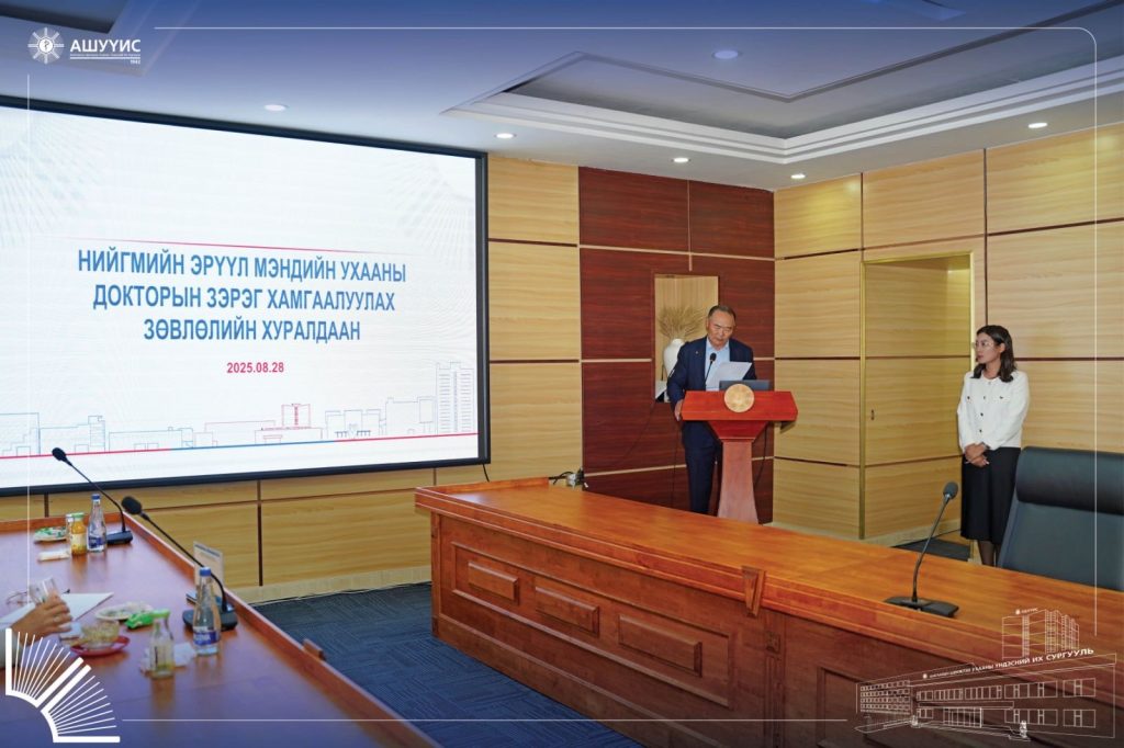 Нийгмийн эрүүл мэндийн ухааны докторын зэрэг хамгаалуулах зөвлөл 2025 оны 08 дугаар сарын 28-ны өдрийн Пүрэв гаригт докторант Ц.АМАРЖАРГАЛ, Н.ГЭРЭЛТ-ОД нарын жинхэнэ хамгаалалтыг хэлэлцэж горилогч нар докторын зэргээ амжилттай хамгааллаа.