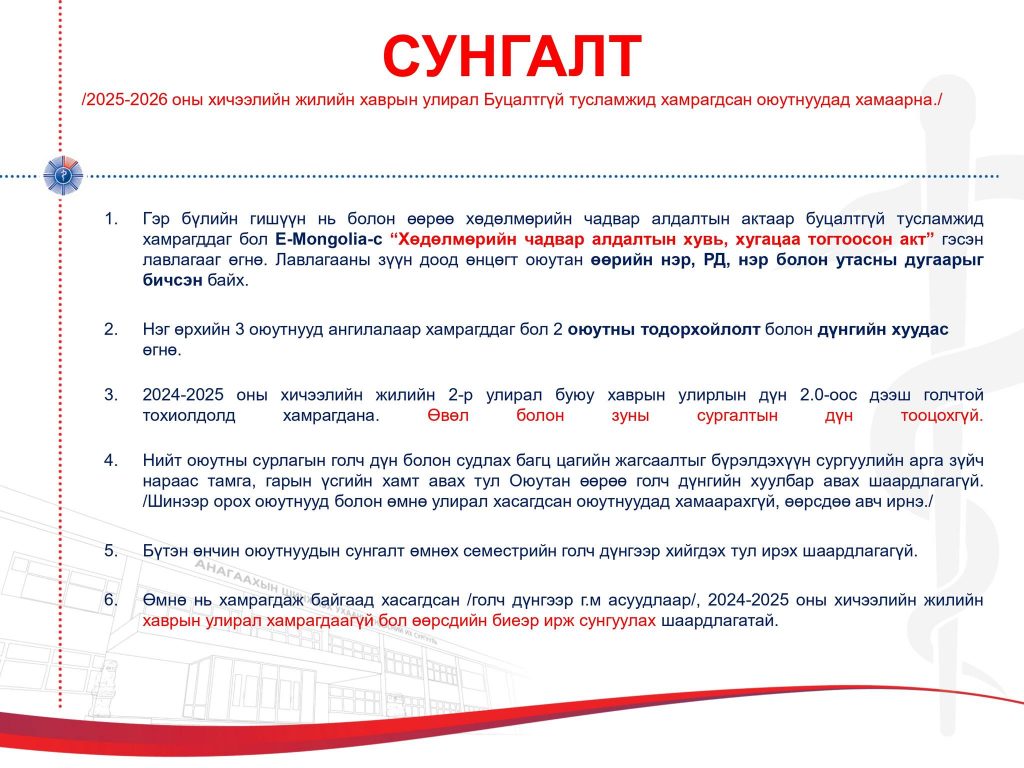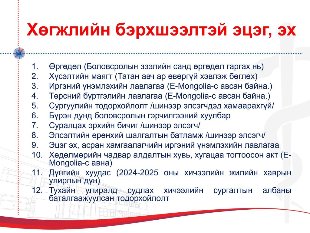 Бичиг баримт дутуу тохиолдолд материал хүлээн авахгүй тул бүрэн гүйцэт бүрдүүлж ирнэ үү.