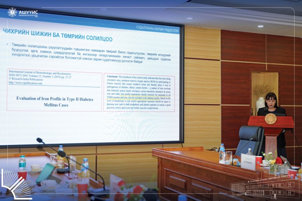 Докторант НОРДОГ овогтой МӨНХ-УЧРАЛ туурвисан “ЧИХРИЙН ШИЖИНГИЙН ҮЕИЙН ЦУСНЫ ЭСҮҮД, ТӨМРИЙН СОЛИЛЦООНЫ ӨӨРЧЛӨЛТИЙГ СУДАЛСАН ДҮН”