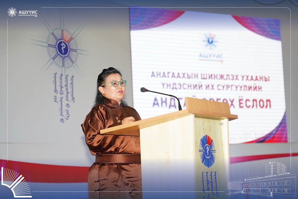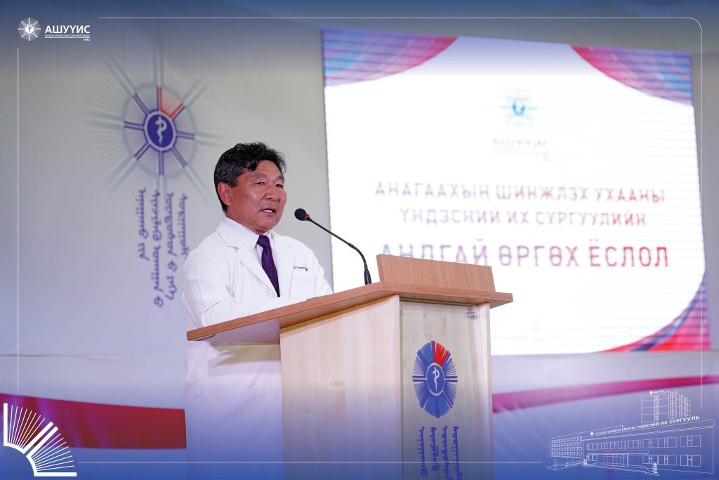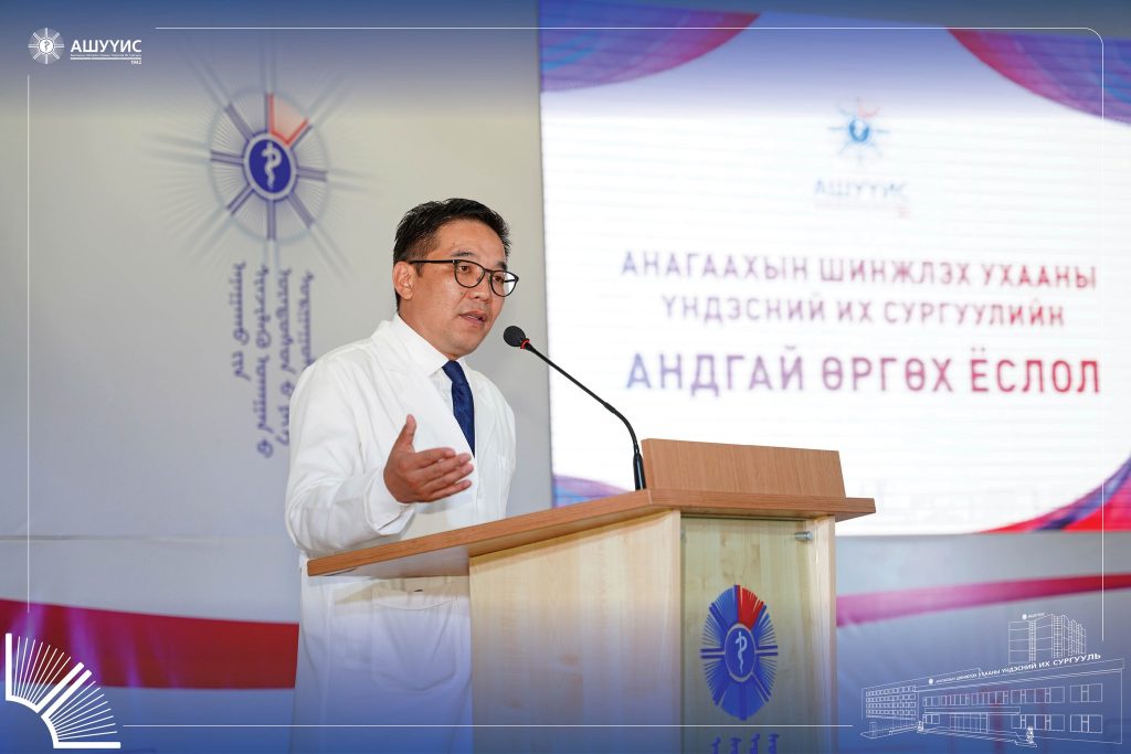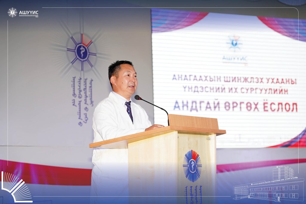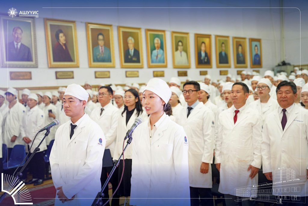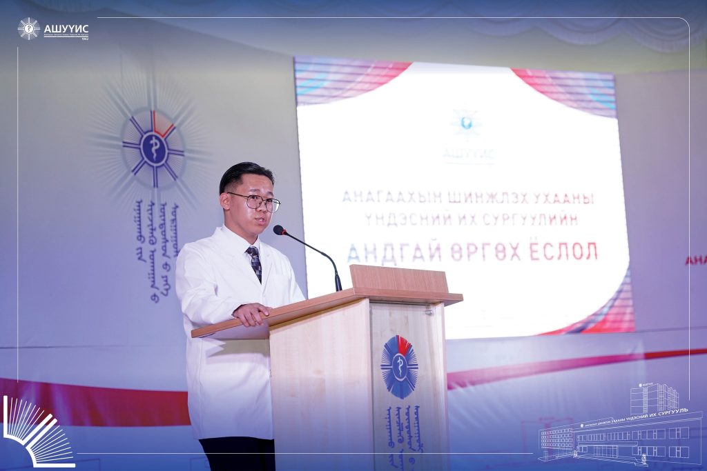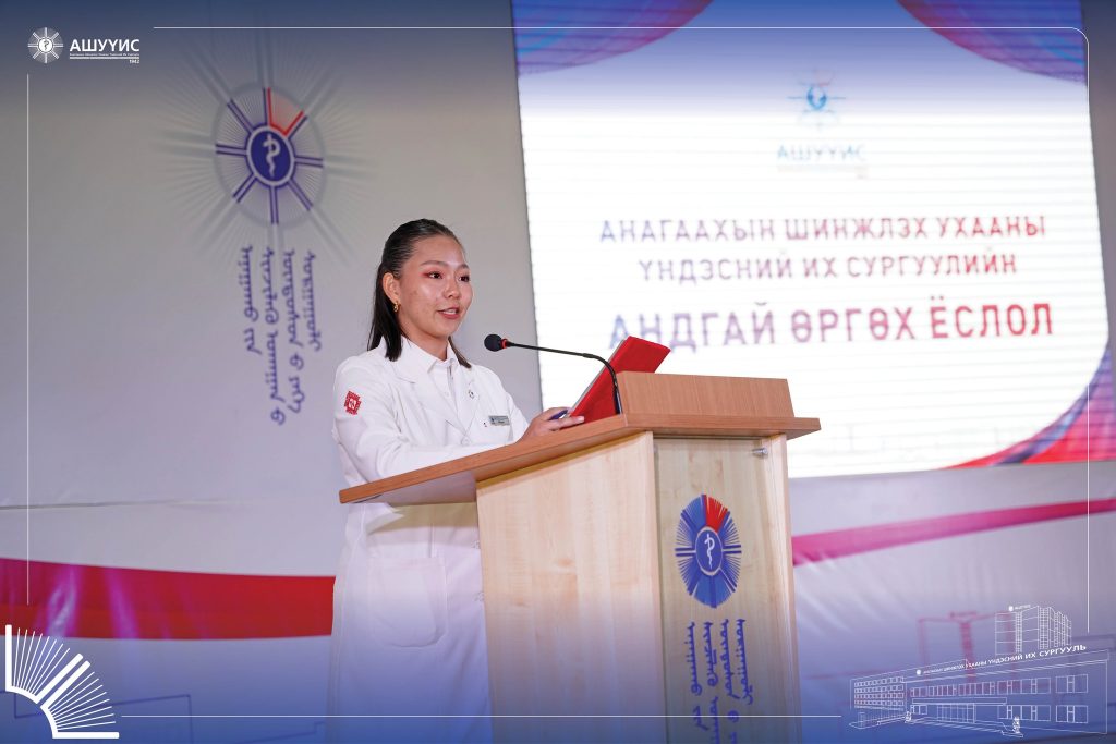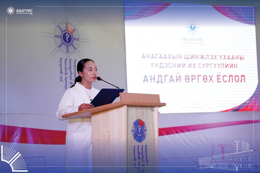 Анагаахын мэргэжлийн үнэ цэн, хүнлэг энэрэнгүй, шударга, бусдад чин сэтгэлээсээ тусладаг, сайн үйлсийг түгээн дэлгэрүүлдэг, тасралтгүй суралцаж, хамтран ажилладаг, эерэг хандлагатай, ёс зүйн хэм хэмжээг сахисан хариуцлагатай, бүтээлч, чадварлаг мэргэжилтнийг бэлтгэх зорилгоор зохион байгуулдаг “АШУҮИС-ийн Оюутны андгай” өргөх ёслолын ажиллагаанд шинээр элссэн 3900 гаруй оюутан оролцлоо.