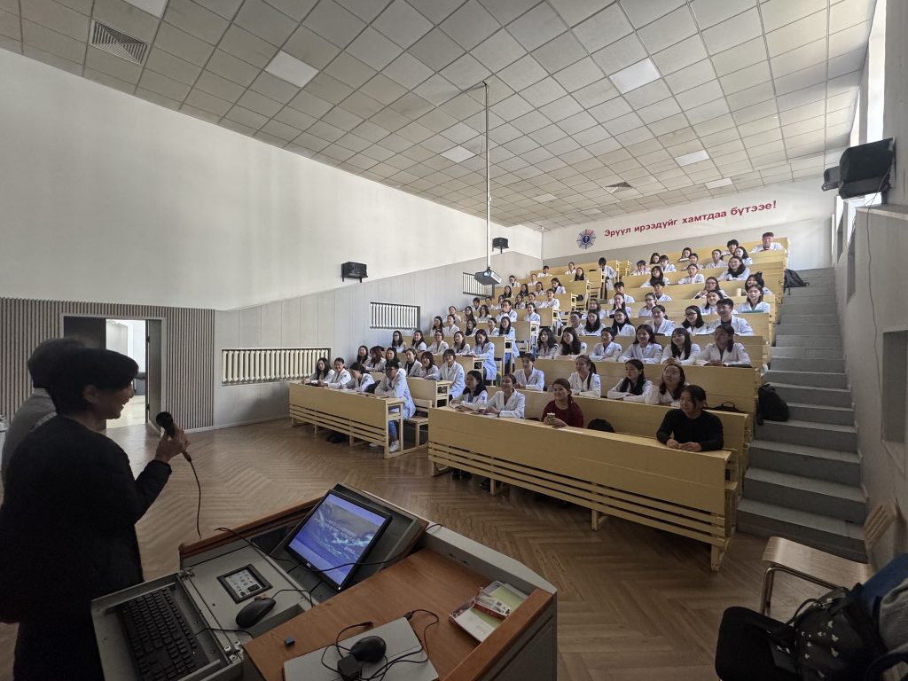 Уг уулзалт 2025 оны 09 сарын 15-ны өдөр зохион байгуулагдсан профессор Курода Казухиро “Амны хөндийн эмгэгээс урьдчилан сэргийлэх; хүүхдийн шүдний эмнэлгийн онцлог” сэдвийн хүрээнд өөрийн ажлын туршлага, мэргэжлийн онцлог, япон эцэг эхчүүд хүүхдийнхээ амны хөндийн эрүүл мэндийг хэрхэн сахидаг, шүдний эмчтэйгээ хэрхэн хамтарч ажилладаг, Монгол хүүхдийн амны хөндийн эрүүл мэндийн төлөө хийсэн олон сайхан ажлуудын талаар халуун дулаан яриаг өрнүүлж, нүүр амны эрүүл ахуйч мэргэжилтний хийх ажлын талаар оюутнуудад сонирхолтой түүхэн мэдээлэл өгч, урам зоригтой болох, мэргэжлээрээ бахархах сэдлийг төрүүллээ.