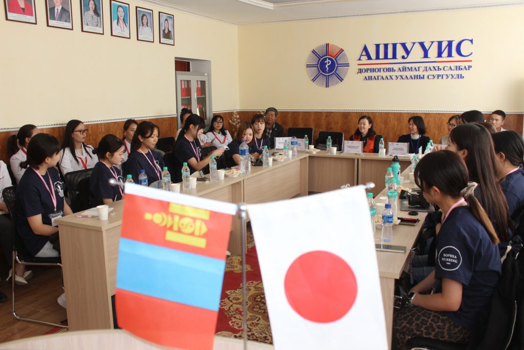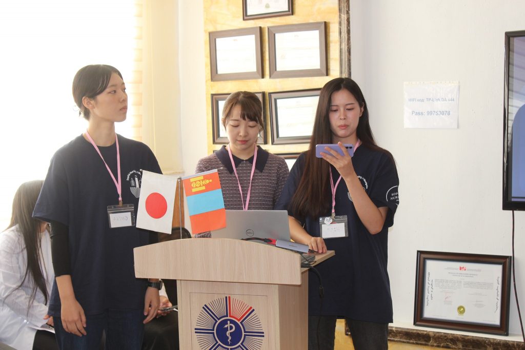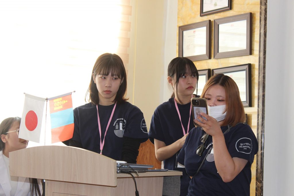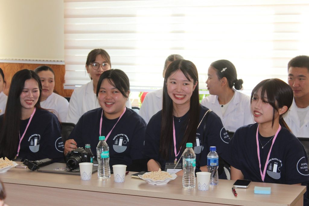 Япон улсын Софиа их сургуулийн Сувилахуйн сургуулийн профессор Yae Yashino багшаар ахлуулсан шилдэг 12 оюутнууд, тус сургуулийн профессор Nahoko Okamoto, Япон улсад ажиллаж амьдарч буй манай анагаахын сургуулийн төгсөгч М.Хулан нар 4 өдрийн турш бидэнтэй хамтран ажиллаж, ЭШ-ний хурал зохион байгуулж оюутнууд маань Гэрийн асаргаа сувилгаа, Жирэмсэн үеийн асаргаа сувилгаа, Хүүхдийн хүчирхийлэл, Эрүүл амьдралын хэв маяг, Яаралтай тусламжийн үеийн асаргаа сувилгаа сэдвүүдээр илтгэл хэлэлцүүлж, Монгол Японы эрүүл мэндийн салбарын сувилахуйн тусламж үйлчилгээний талаар санал солилцлоо.