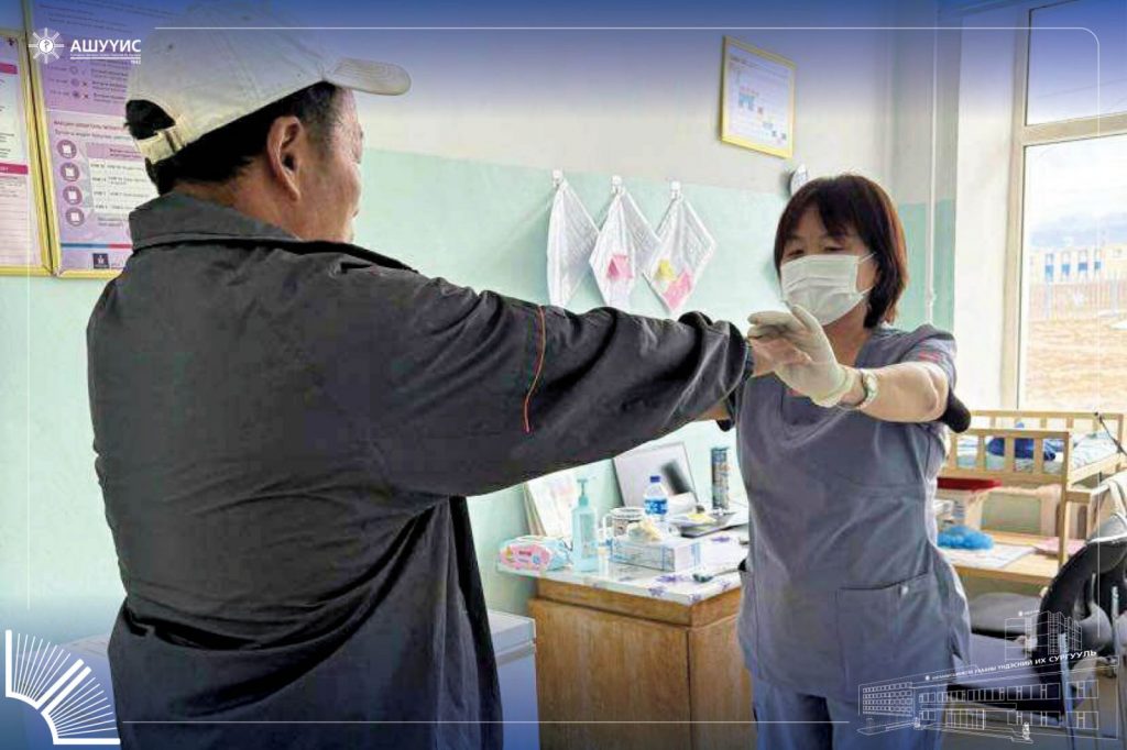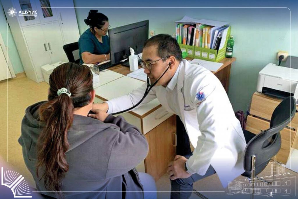 СУМЫН 800 ГАРУЙ ИРГЭД, 350 ГАРУЙ ХҮҮХДЭД НҮҮР АМНЫ БОЛОН ЭРҮҮЛ МЭНДИЙН ТУСЛАМЖ ҮЙЛЧИЛГЭЭГ ҮЗҮҮЛЛЭЭ. АШУҮИС-ийн Анагаах ухааны сургуулийн Мэдрэл судлалын тэнхимийн ахлах багш, АУ-ы доктор Ц.Баясгалан, Зүрх судлалын тэнхимийн багш, АУ-ы доктор Ц.Сумьяа, Хүүхдийн анагаахын тэнхимийн дадлагажигч багш, АУ-ы доктор О.Солонго, Сэргээн засах анагаах ухааны тэнхимийн багш, АУ-ы магистр Ц.Наранцэцэг, Эх барих, эмэгтэйчүүдийн тэнхимийн дадлагажигч багш, АУ-ы магистр Д.Эрдэнэсувд, Радиологийн тэнхимийн дадлагажигч багш, АУ-ы магистр Ц.Цахим-Эрдэнэ нийт 6 багш