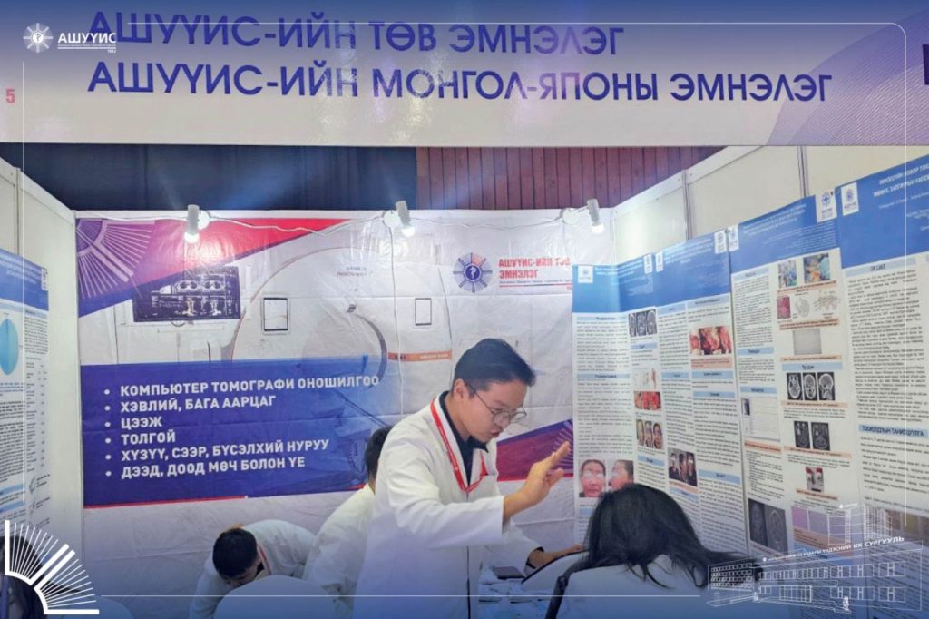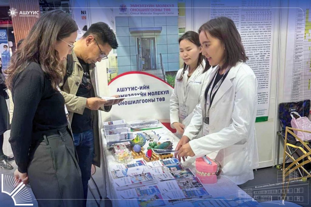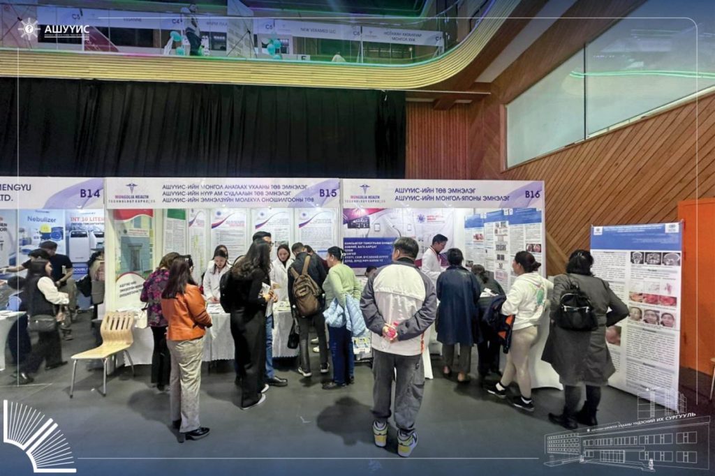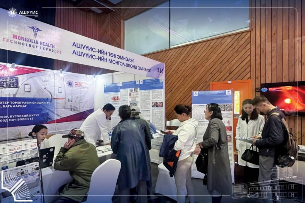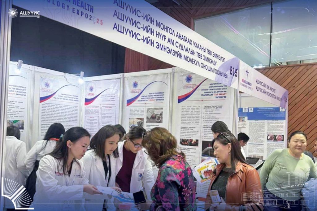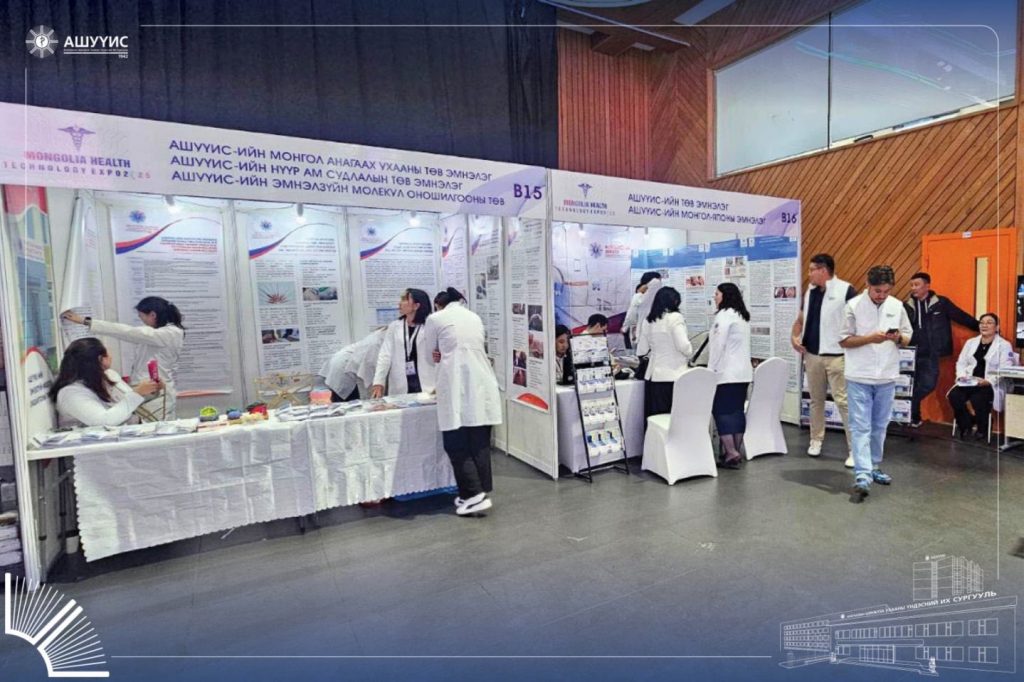 АШУҮИС-ийн Төв эмнэлэг, Монгол-Японы эмнэлэг, Нүүр ам судлалын төв эмнэлэг, Монгол анагаах ухааны төв эмнэлэг, Эмнэлзүйн молекул оношилгооны төвийн хамт олон “М Банк” Арена төвд “ЭРҮҮЛ МЭНДИЙН ТЕХНОЛОГИ-2025” үзэсгэлэнд оролцож байна.