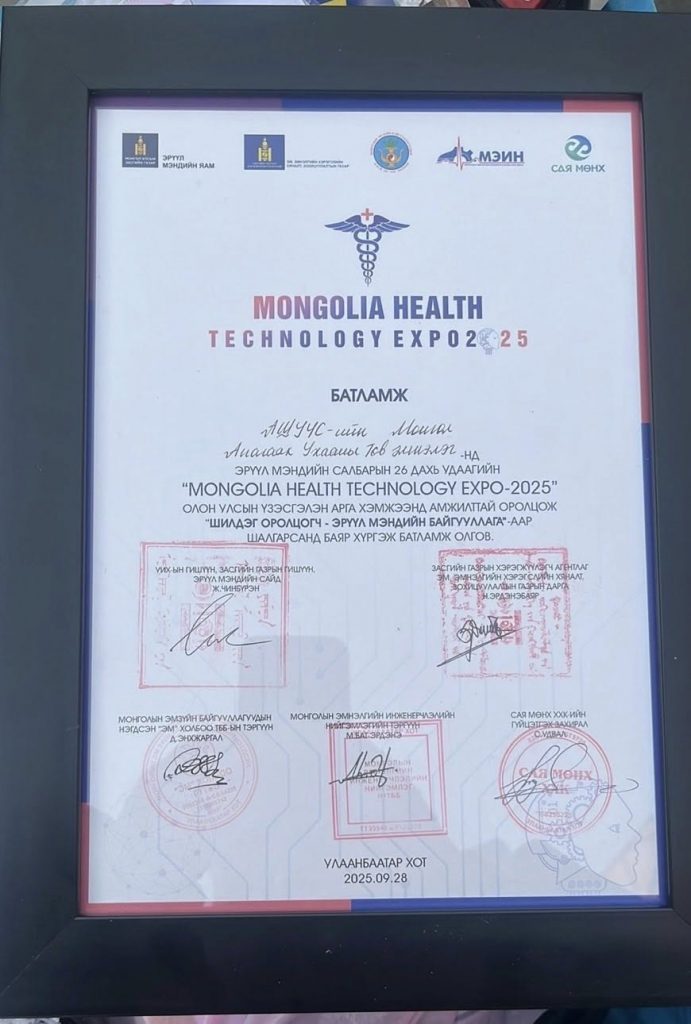 МОНГОЛ АНАГААХ УХААНЫ ТӨВ ЭМНЭЛГИЙН ХАМТ ОЛОНДОО БАЯР ХҮРГЭЖ, АМЖИЛТ ХҮСЬЕBattsetseg DSeptember 29, 2025МЭДЭЭ, Мэдээ Эрүүл мэндийн экспо-2025 д АШУҮИС-ийн харьяа эмнэлгүүд амжилттай оролцож, Монгол анагаах ухааны төв эмнэлэг “Шилдэг оролцогч, ЭРҮҮЛ МЭНДИЙН БАЙГУУЛЛАГА” аар шалгарлаа. Та бүгддээ баяр хүргэе. ЭРҮҮЛ ИРЭЭДҮЙГ ХАМТДАА БҮТЭЭЕ! Previous Post “Монголын Анагаахын Мэргэд” цуврал номын “XXXIX” боть “Нүүр ам судлалын эрдэмтэн, Гавьяат эмч, доктор, профессор ЦЭНД-АЮУШИЙН НОРОВПИЛ” номын нээлт боллоо Next Post ЭЛСЭГЧДИЙН УРЛАГ, СПОРТЫН БАГА НААДАМ-2025 АМЖИЛТТАЙ ЭХЭЛЛЭЭ