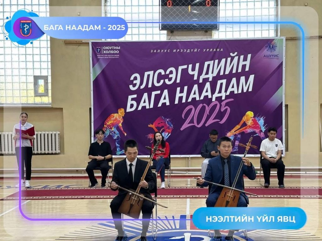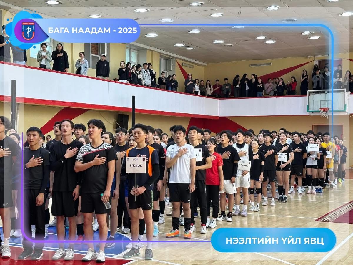 АШУҮИС-ийн “Элсэгчдийн урлаг, спортын бага наадам-2025”-д нийт 8 багийн төлөөлөл болох 400 гаруй оюутан залуус оролцож байгаа бөгөөд тамирчид өөрсдийн ур ухаан, авьяас чадвараа сорин спортын 4 төрөл, урлагийн 5 төрлөөр өрсөлдөж байна.