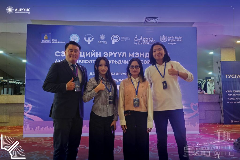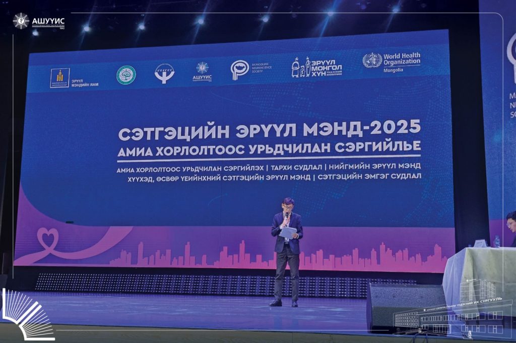 ДЭМБ, ЭМЯ, СЭМҮТ, АШУҮИС-ийн Сэтгэцийн эрүүл мэндийн тэнхим хамтран “Сэтгэцийн эрүүл мэнд -2025, Амиа хорлолтоос урьдчилан сэргийлье” сэдэвт олон улсын эрдэм шинжилгээний хурлыг 2025 оны 9-р сарын 29-ний өдөр амжилттай зохион байгууллаа.