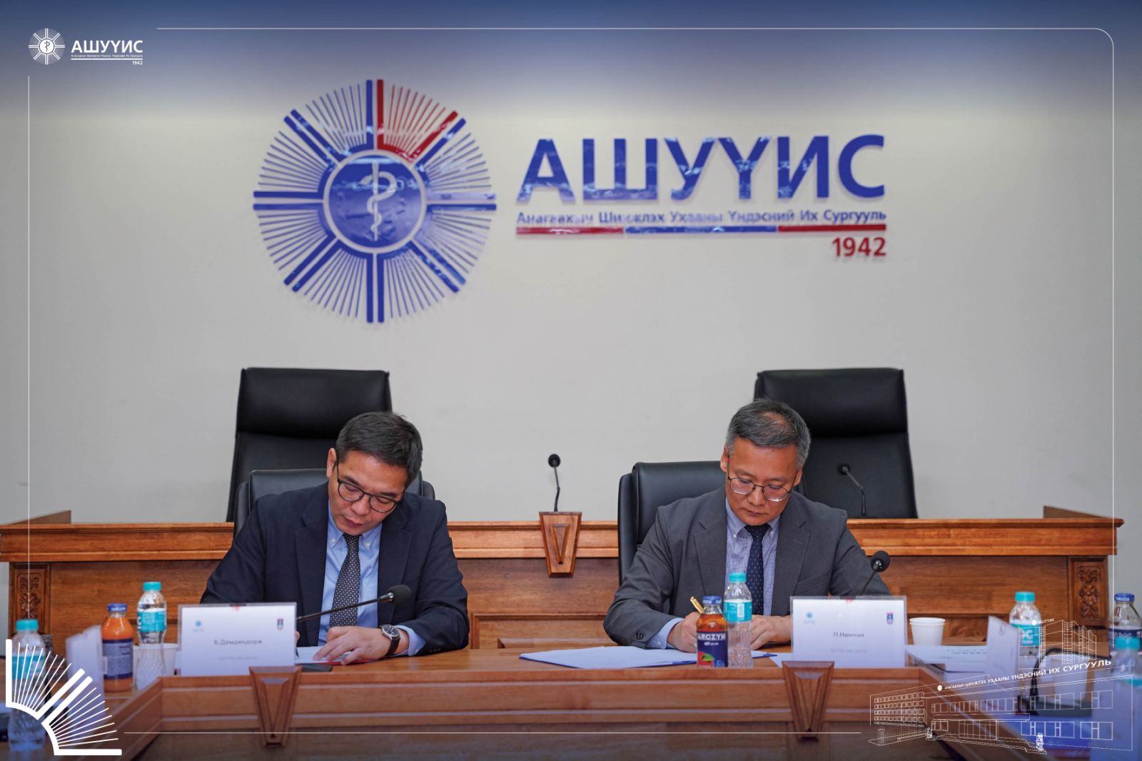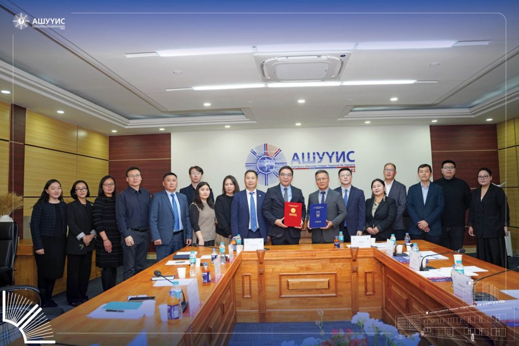 Төрийн өмчийн их сургуулиудын хамтын ажиллагааны гэрээний хүрээнд Анагаахын шинжлэх ухааны үндэсний их сургуулийн Сувилахуйн сургууль, Шинжлэх ухаан технологийн их сургуулийн Механик инженер, тээврийн сургуулийн судалгаа боловсруулалтын багийн хамтран хэрэгжүүлэх “Тархины саатай хүүхдийн алхааны биомеханикийг үнэлэх нь” сэдэвт төслийн гэрээнд гарын үсэг зурах үйл ажиллагаа 2025 оны 10 дүгээр сарын 09-ний өдөр АШУҮИС-ийн Эрдмийн өргөөнд зохион байгуулагдлаа.