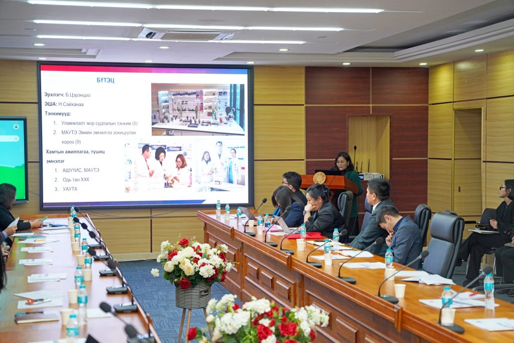 АШУҮИС-ИЙН ЭРДЭМ ШИНЖИЛГЭЭНИЙ ХҮРЭЭЛЭН, ТӨВ, СЕКТОР, ЛАБОРАТОРИЙН ЭРХЛЭГЧ НАРЫН ҮЙЛ АЖИЛЛАГААНЫ ТАЙЛАНГ ХЭЛЭЛЦЛЭЭBattsetseg DNovember 4, 2025МЭДЭЭ, Мэдээ АШУҮИС-ийн Эрдэм шинжилгээний хүрээлэн, төв, сектор, лабораторийн эрхлэгч нарын үйл ажиллагааны тайланг 2025 оны 10-р сарын 17-ны өдөр хэлэлцлээ. Хэрэгжүүлж буй төсөл тайланг хугацаанд нь багтаан дуусгахыг удирдлагын зүгээс үүрэг болголоо. Previous Post “НОЙР СУДЛАЛЫН АСУУДАЛ” ОЛОН УЛСЫН АНХДУГААР ХУРАЛД УРЬЖ БАЙНА Next Post ҮНДЭСНИЙ ШИНЖЛЭХ УХААН, ТЕХНОЛОГИЙН САНГИЙН САНХҮҮЖИЛТЭЭР АШУҮИС-Д ХЭРЭГЖИЖ БАЙГАА БОЛОН ХЭРЭГЖИЖ ДУУССАН ТӨСЛҮҮДЭД ХЯНАЛТ ШИНЖИЛГЭЭ ХИЙГДЛЭЭ