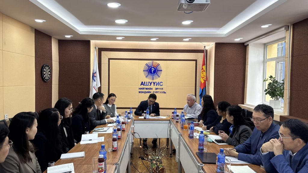АШУҮИС нь АНУ-ын Техасын Их Сургууль болон Дюк Их сургуультай хамтран 2022-2027 онд хэрэгжүүлж буй “Монголын Хүрээлэн Буй Орчин ба Хөдөлмөрийн Эрүүл Мэндийн Төв“ төслийн явц, тайланг хэлэлцэх хурал 2025 оны 11 дугаар сарын 07-ны өдөр НЭМС-ийн Эрдмийн Өргөөнд зохион байгуулагдлаа.