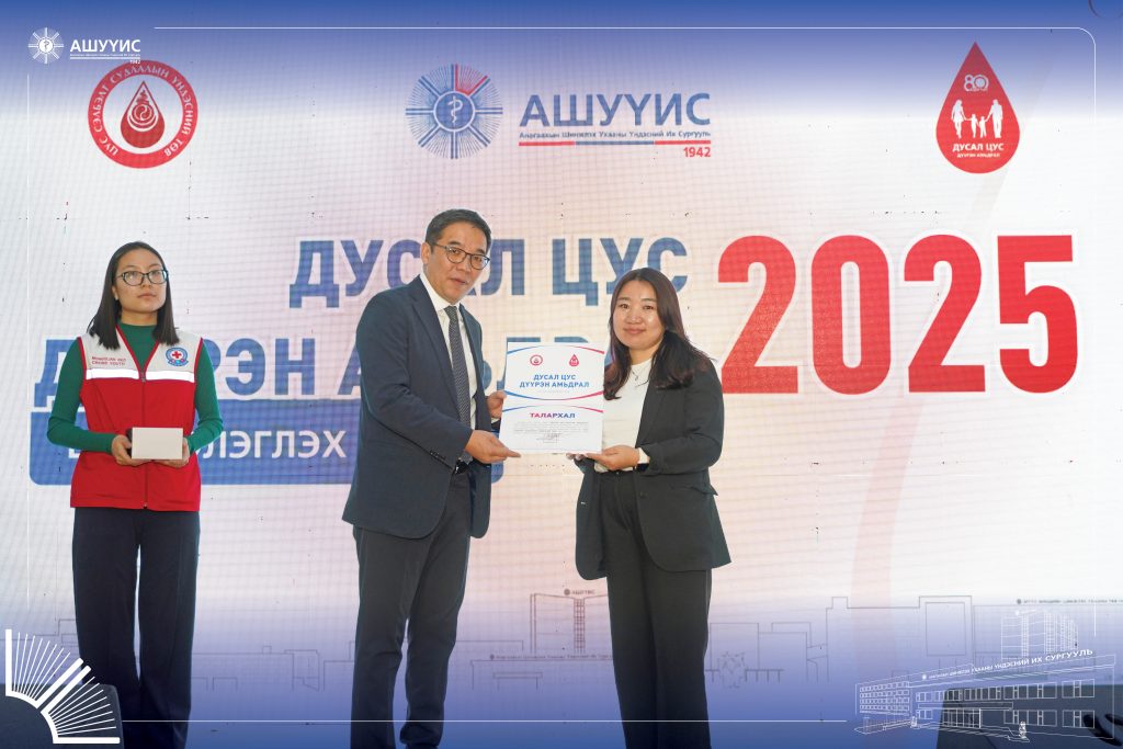 АШУҮИС-ийн Оюутны хөгжлийн хөтөлбөрийн хүрээнд Цус сэлбэлт судлалын үндэсний төвтэй (ЦССҮТ) хамтран хэрэгжүүлдэг “Дусал цус – Дүүрэн амьдрал” аян тав дахь жилдээ амжилттай үргэлжилж байна.