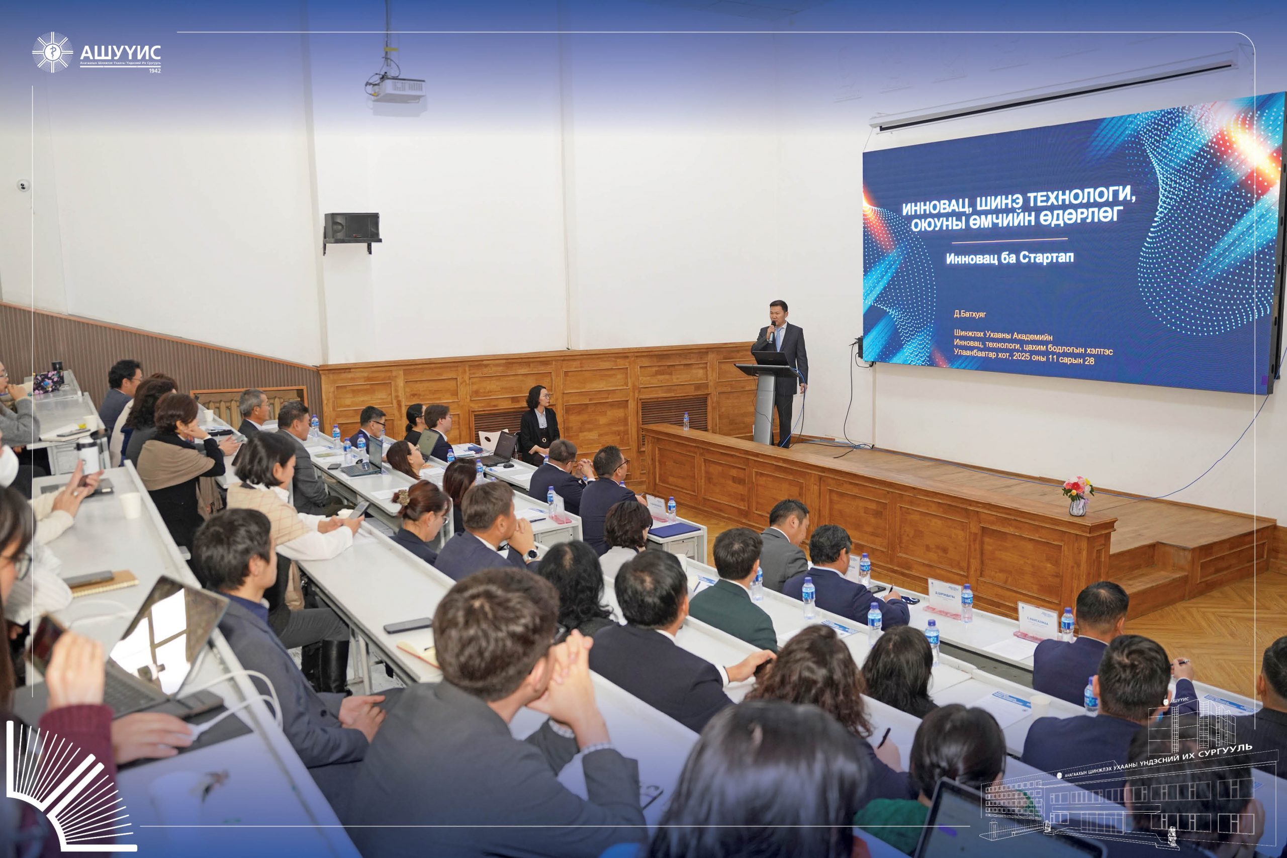 2025 оны 11 сарын 28-нд зохион байгуулагдсан “ИННОВАЦ ШИНЭ ТЕХНОЛОГИ, ОЮУНЫ ӨМЧИЙН ӨДӨРЛӨГ”-т Монгол Улсын шинжлэх ухааны академи, Монгол улсын их сургууль, Шинжлэх ухаан, технологийн Улаанбаатар парк, Шинжлэх ухаан технологи инновацын газар, Wingardium хуулийн фирм, CareAI төсөл, Монгол анагаах ухааны олон улсын сургууль, Монгол-Япон эмнэлэгийн Гемофилийн төвөөс зочин илтгэгчид сонирхолтой илтгэл хэлэлцүүлэв.