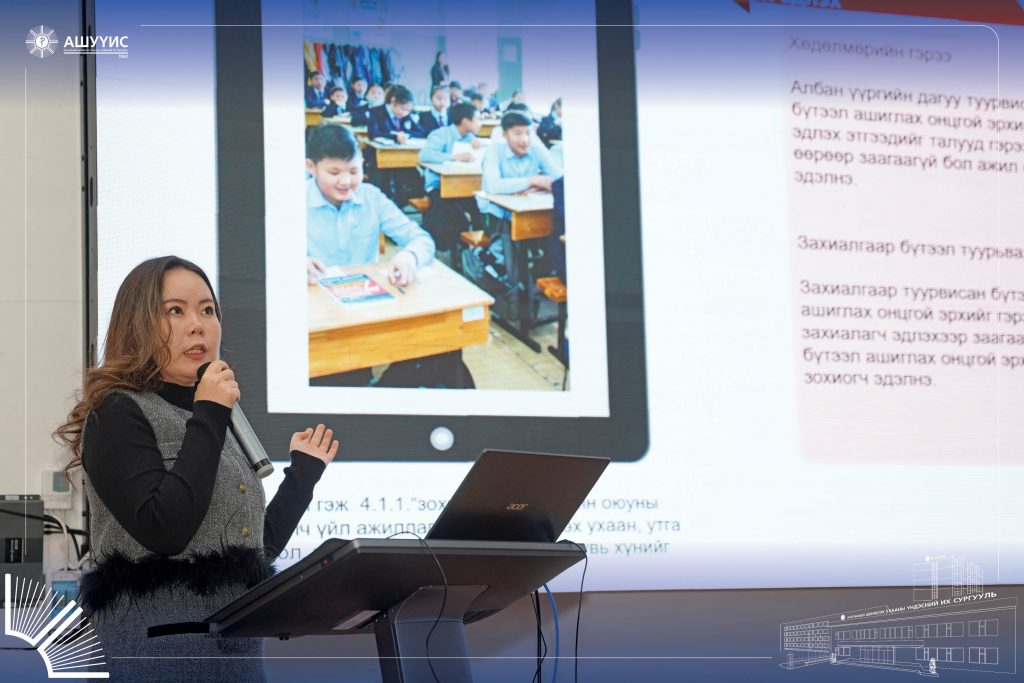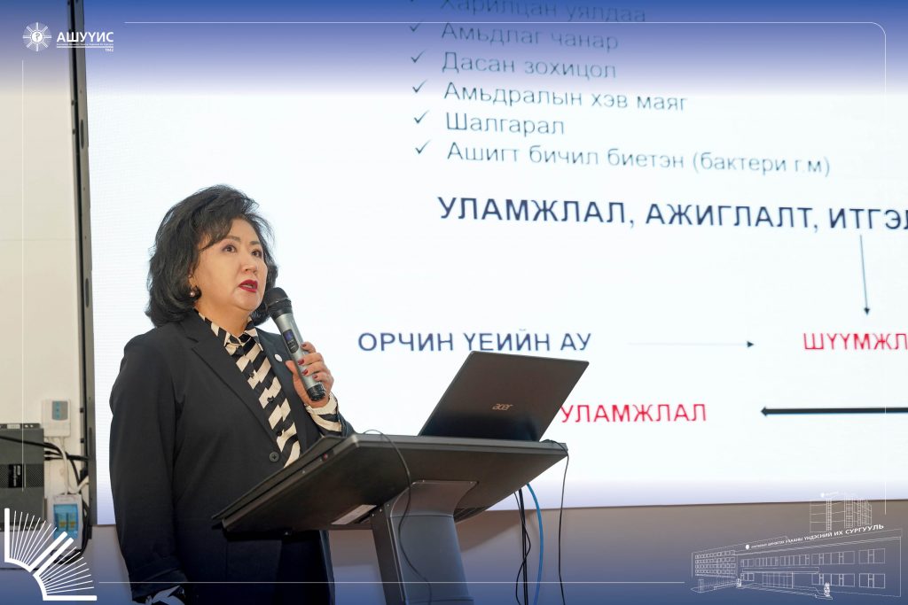 Өдөрлөгийг угтан зохион байгуулсан сургалтад Оюуны өмчийн газар, Шинэ бүтээл ашигтай загварын ахлах шинжээч Б.Оргилмаа “Шинэ бүтээл, ашигтай загварын патентын мэдүүлэг бүрдүүлэх, патентын мэдүүлэгт оюуны өмчийн бүртгэлийн системд хайлт хийх” сэдвээр, АШУҮИС-ийн АУС-ийн Дотоод шүүрэл судлалын тэнхимийн эрхлэгч Б.Оюунтөгс “Оношилгооны аргын хүчин төгөлдөр байдлын ба тавилангийн судалгааны зарим статистик хэрэглээ” сэдвээр сургалтыг удирдан явуулж, 50 гаруй багш, шинжилгээний ажилтан, судлаачид сургалтад хамрагдлаа.