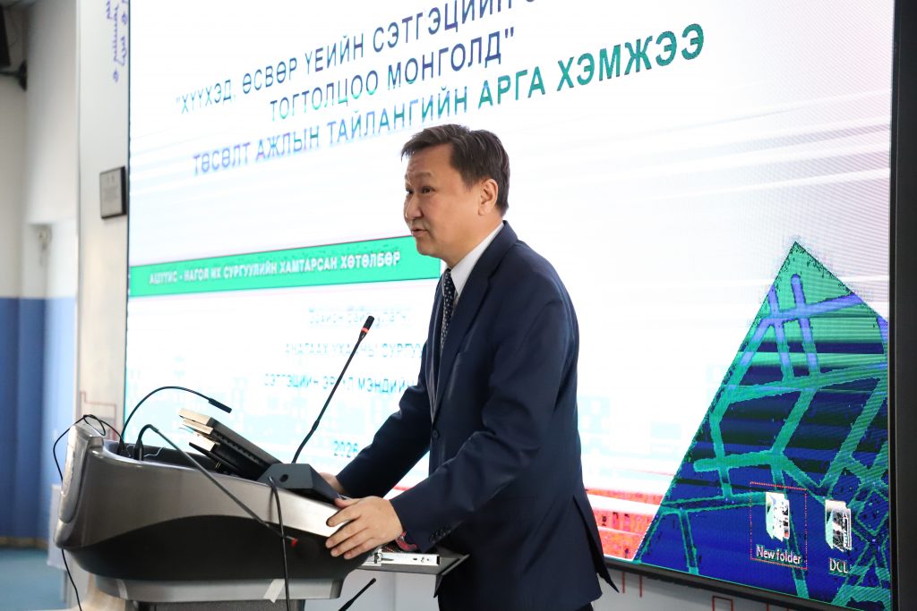 АШУҮИС-ийн АУС-ийн Сэтгэцийн эрүүл мэндийн тэнхим, Япон Улсын Нагояагийн их сургуулийн Хүний хөгжил, сэтгэл зүйн дэмжлэг, судалгааны төв, МУБИС-ийн хамтын ажиллагааны хүрээнд “Хүүхдийн сэтгэцийн эмч бэлтгэх” сургалтын төсөлт ажлыг 2023 оноос эхлэн хэрэгжүүлж эхэлсэн бөгөөд тус төслийн үйл ажиллагааны тайлангийн хурал 2026 оны 01 дүгээр сарын 12-ны өдөр зохион байгуулагдав.