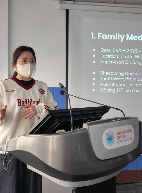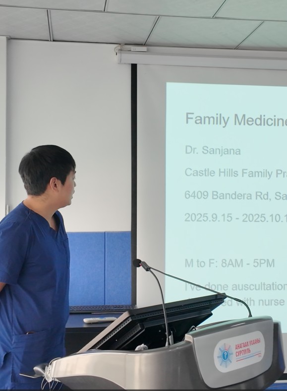 АШУҮИС-ийн Анагаах Ухааны Сургуулийн Англи хэл дээр хүний их эмч бэлтгэх хөтөлбөрийн 6 дугаар дамжааны оюутан Ха Хёжүн болон Жүн Сюнгхан нар дадлагажуулах эмнэлзүйн сургалтын хүрээнд хийгддэг Эх барих эмэгтэйчүүд, Хүүхдийн өвчин, Өрхийн анагаах ухаан, Яаралтай тусламж, Мэдрэл судлалын тойролтоо АНУ-ын таван эмнэлэгт 2025 оны 9 дүгээр сарын 8-наас 12 дугаар сарын 26-ны хооронд амжилттай хийж, туршлага хуримтлуулаад ирлээ.