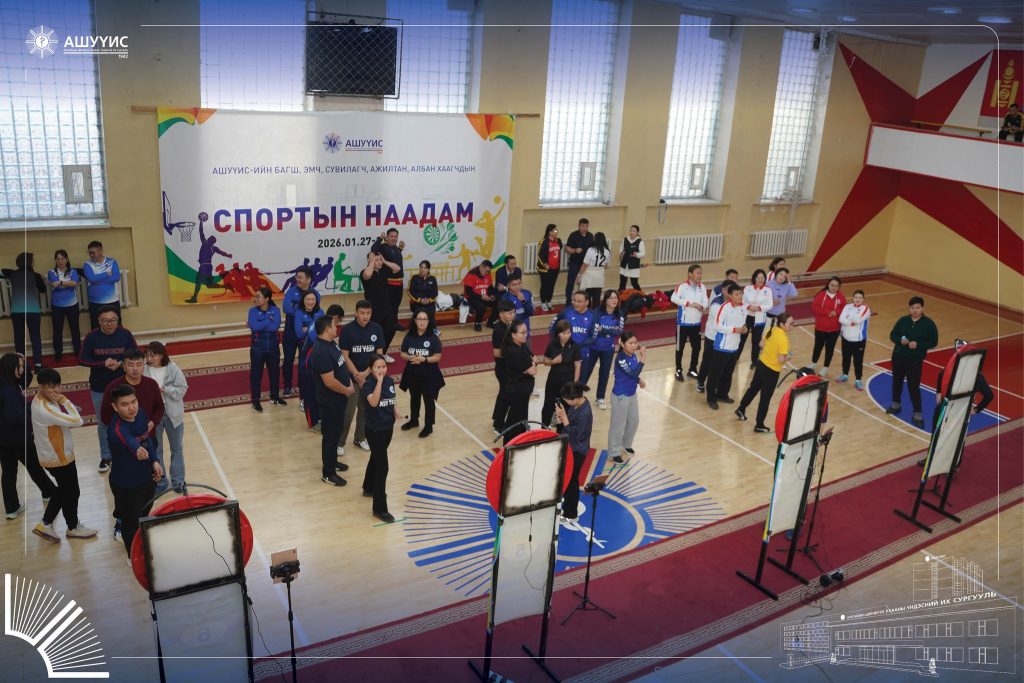 АШУҮИС-ИЙН БАГШ, ЭМЧ, СУВИЛАГЧ, ЭМНЭЛГИЙН МЭРГЭЖИЛТЭН, АЖИЛТАН АЛБАН ХААГЧДЫН ДУНД ЗОХИОГДОЖ БУЙ 6 ТӨРӨЛТ СПОРТЫН НААДАМ ДАРТСЫН ТӨРЛӨӨР АМЖИЛТТАЙ ҮРГЭЛЖИЛЖ БАЙНАBattsetseg DFebruary 24, 2026МЭДЭЭ, Мэдээ Previous Post АШУҮИС-ИЙН 2025-2026 ОНЫ ХИЧЭЭЛИЙН ЖИЛИЙН МАГИСТР, ДОКТОРЫН СУРГАЛТЫН ХАВРЫН ЭЛСЭЛТИЙН БҮРТГЭЛ ЯВАГДАЖ БАЙНА Next Post АШУҮИС-ИЙН БАГШ, ЭМЧ, СУВИЛАГЧ, ЭМНЭЛГИЙН МЭРГЭЖИЛТЭН, АЖИЛТАН АЛБАН ХААГЧДЫН ДУНД ЗОХИОГДОЖ БУЙ 6 ТӨРӨЛТ СПОРТЫН НААДМЫН НЭЭЛТЭД 12 БАГИЙН 600 ГАРУЙ ТАМИРЧИД ЖАГСЛАА.