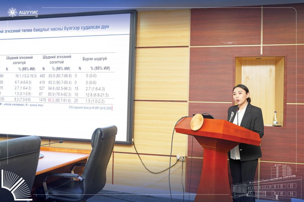 Докторант ПҮРЭВСҮРЭН овогтой МАРАЛГОО туурвисан “МОНГОЛЧУУДЫН ДУНД ТОХИОЛДОЖ БУЙ ШҮДНИЙ ЭГНЭЭНИЙ СОГОГИЙН ТӨЛӨВ БАЙДАЛ, ЗАЖЛАХ ҮЙЛИЙН АЛДАГДАЛ, СОГОГ ЗАСЛЫН ЭМЧИЛГЭЭНИЙ ХЭРЭГЦЭЭ” сэдэвт судалгааны ажлын жинхэнэ хамгаалалт амжилттай боллоо.