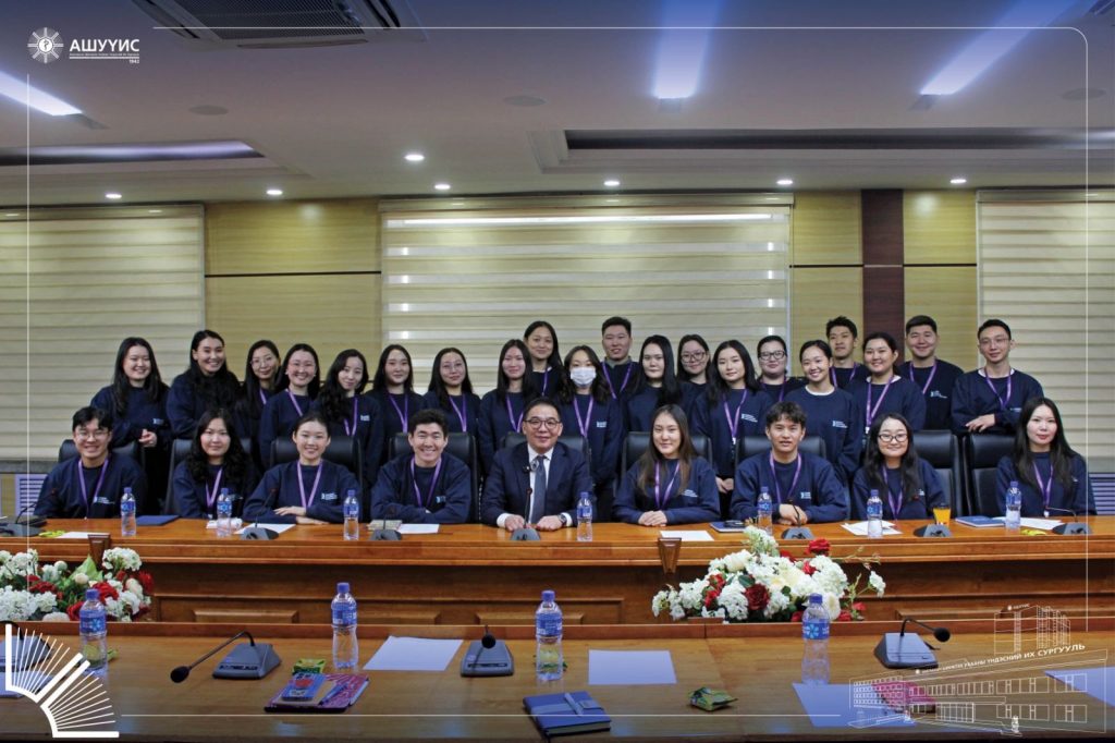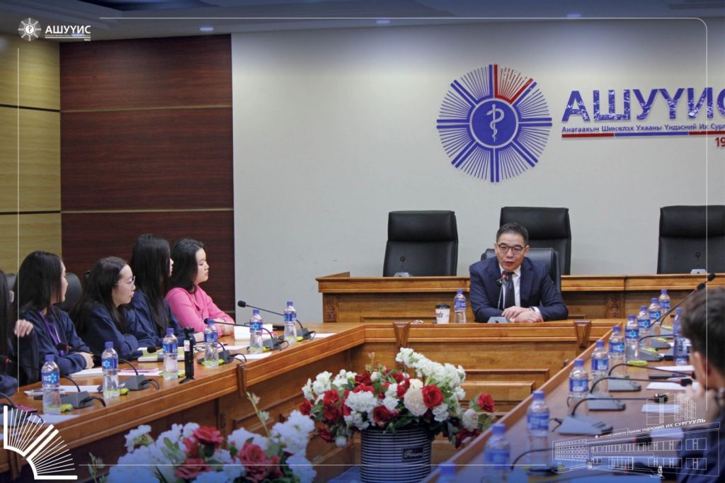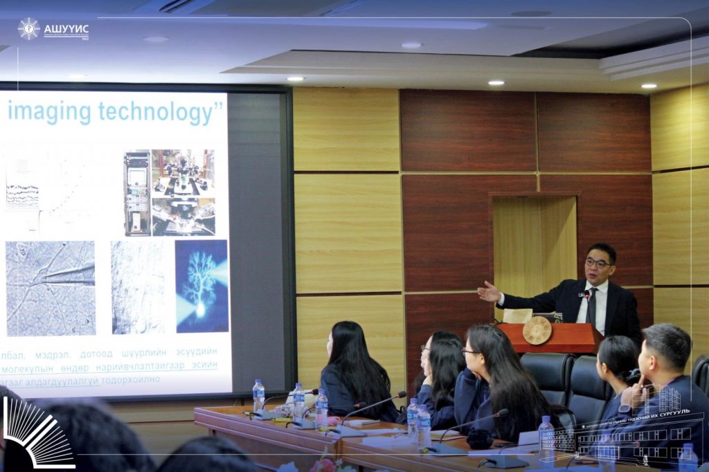 Хөтөлбөрийн эхний хичээлээр АШУҮИС-ийн Ректор, профессор Б.Дамдиндорж эрүүл мэндийн салбарт залуусын оролцоо, хөгжил, карьер төлөвлөлтийн талаар болон тархи судлалын чиглэлээрх өөрийн судалгааны ажлыг танилцуулж, оролцогч залуустай чөлөөт ярилцлага өрнүүллээ.