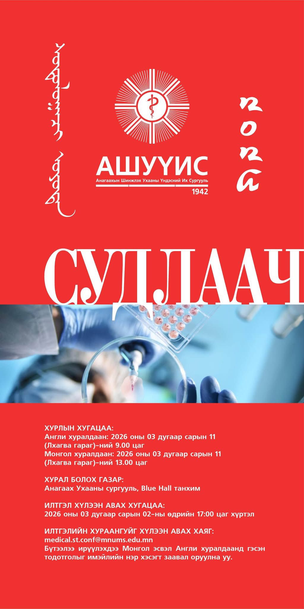СУДЛААЧ_ОЮУТАН_2026 ОЛОН УЛСЫН ОЮУТНЫ ЭРДЭМ ШИНЖИЛГЭЭНИЙ ХУРАЛ БОЛНОBattsetseg DFebruary 25, 2026МЭДЭЭ, Мэдээ Previous Post СУДЛААЧ_ОЮУТАН_2026 ОЛОН УЛСЫН ОЮУТНЫ ЭРДЭМ ШИНЖИЛГЭЭНИЙ ХУРАЛ БОЛНО Next Post ЭМ ЗҮЙН УХААНЫ ДОКТОРЫН ЗЭРЭГ ХАМГААЛУУЛАХ ЗӨВЛӨЛИЙН ХУРАЛДААН БОЛЛОО