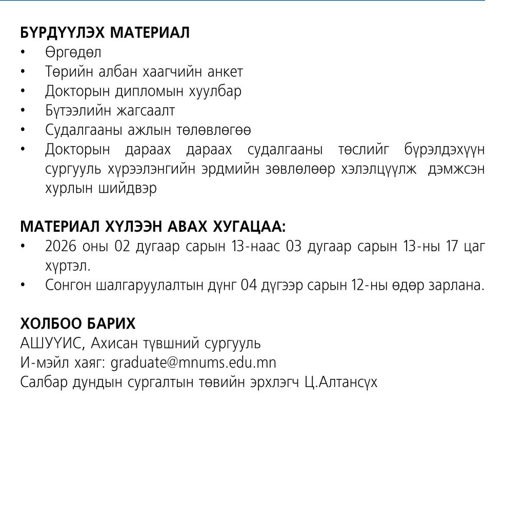 • Докторын дараах судалгаа нь 2 хүртэлх жил байна.