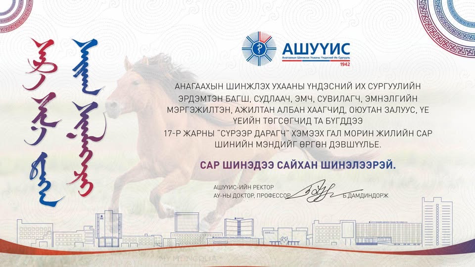 Анагаахын Шинжлэх Ухааны Үндэсний Их Сургуулийн эрдэмтэн багш, судлаач, эмч, сувилагч, эмнэлгийн мэргэжилтэн, ажилтан албан хаагчид, оюутан залуус, үе үеийн төгсөгчид Та бүгддээ