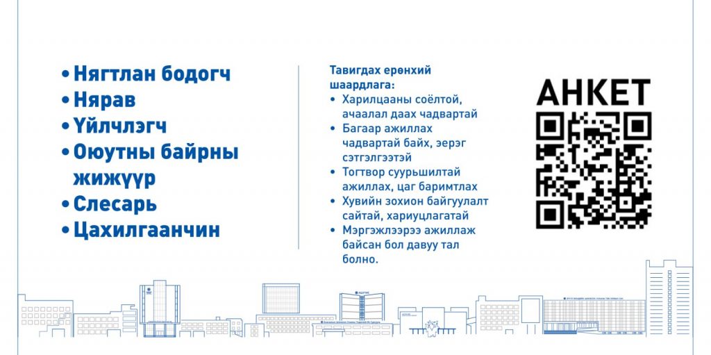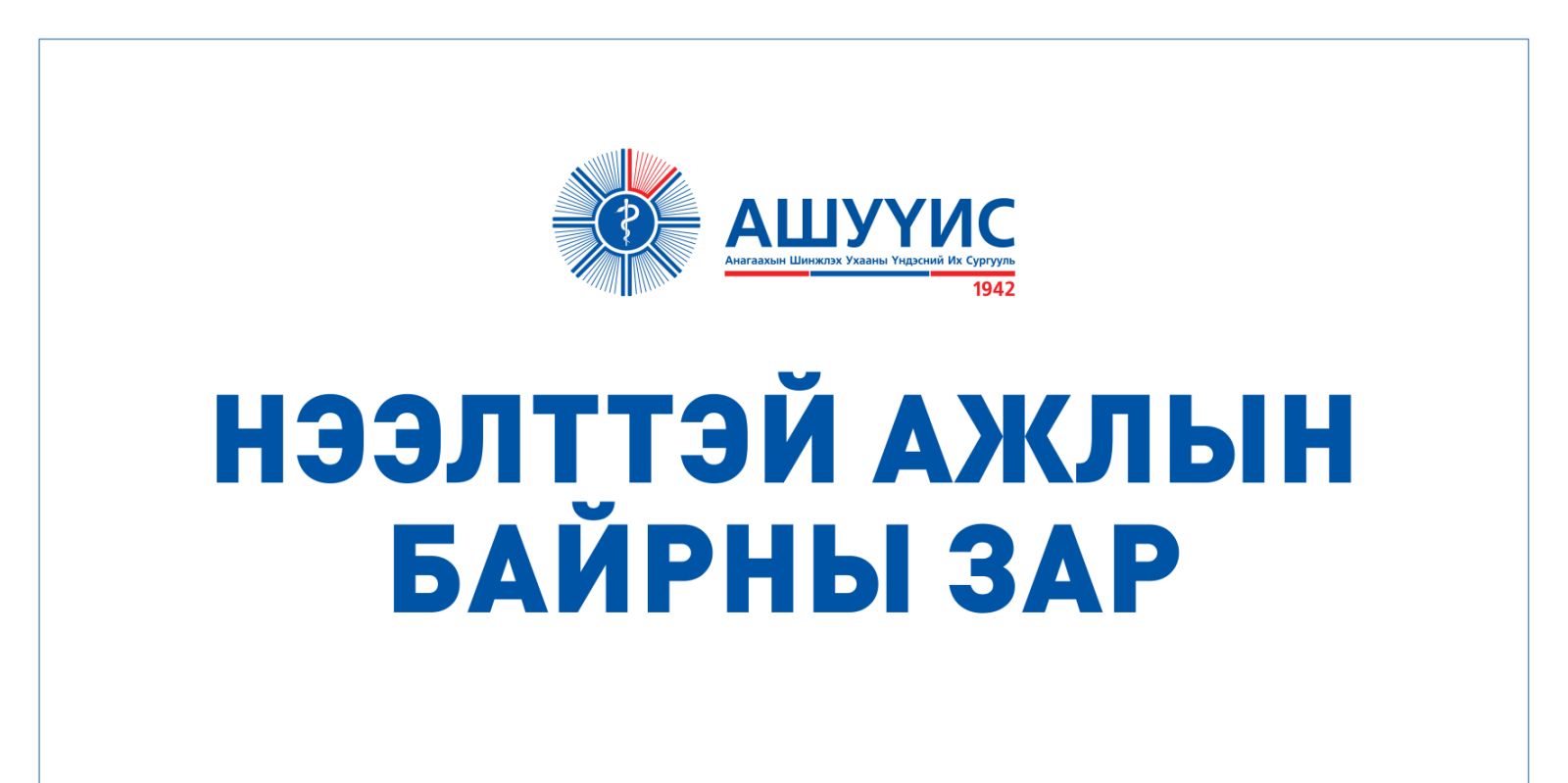ДАРААХ АЖЛЫН БАЙРАНД АЖИЛТАН ШАЛГАРУУЛЖ АВНАBattsetseg DMarch 26, 2026МЭДЭЭ, Мэдээ Доорх линкээр орж анкет бөглөнө үү. https://forms.gle/jZ5jF5xjNHFBQWPLA Previous Post “ЭМЧИЙН ДОТООД ХҮЧ” СЭДЭВТ СУРГАЛТ АМЖИЛТТАЙ ЗОХИОН БАЙГУУЛАГДЛАА Next Post АШУҮИС, ДХИС ХАМТРАН АЖИЛЛАХ САНАМЖ БИЧИГТ ГАРЫН ҮСЭГ ЗУРЛАА