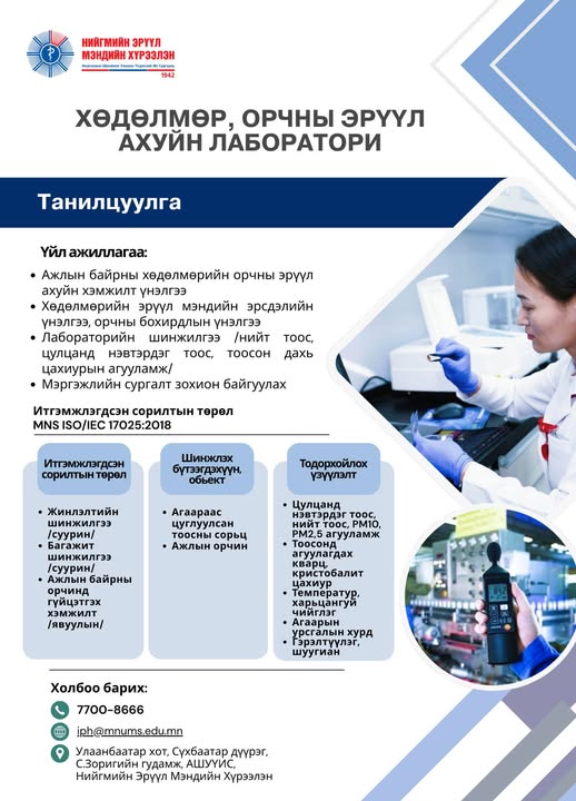 MNS ISO/IEC 17025:2018 стандартын дагуу итгэмжлэгдсэн лаборатори