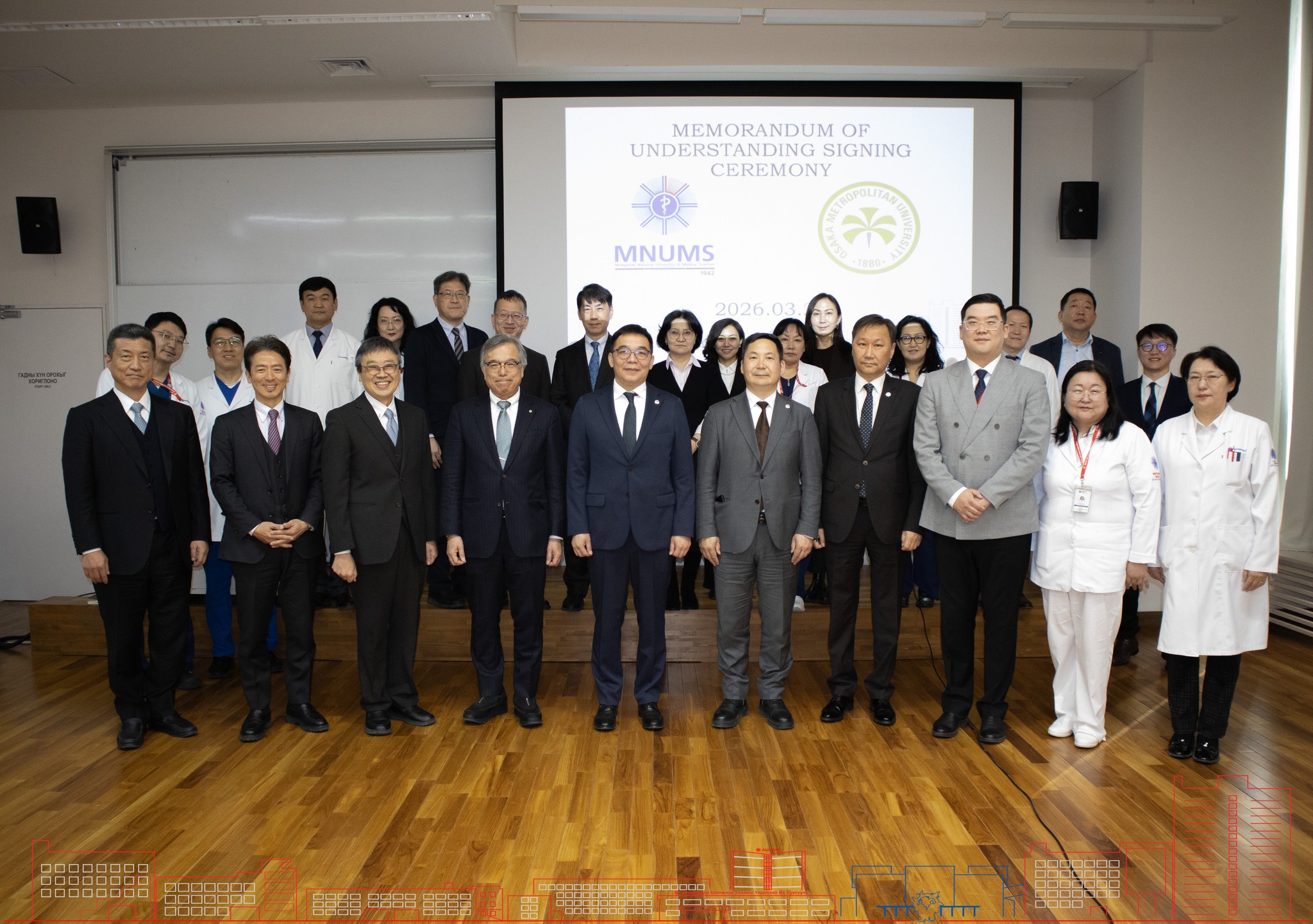 Анагаахын Шинжлэх Ухааны Үндэсний Их Сургуулийн Монгол-Японы эмнэлэг болон Япон улсын Осака Метрополитан Их Сургуулийн эмнэлэг хооронд хамтын ажиллагааны санамж бичиг байгуулах ёслол, уулзалт, хэлэлцүүлэг 2026 оны 3 дугаар сарын 21-ний өдөр амжилттай зохион байгуулагдлаа.
