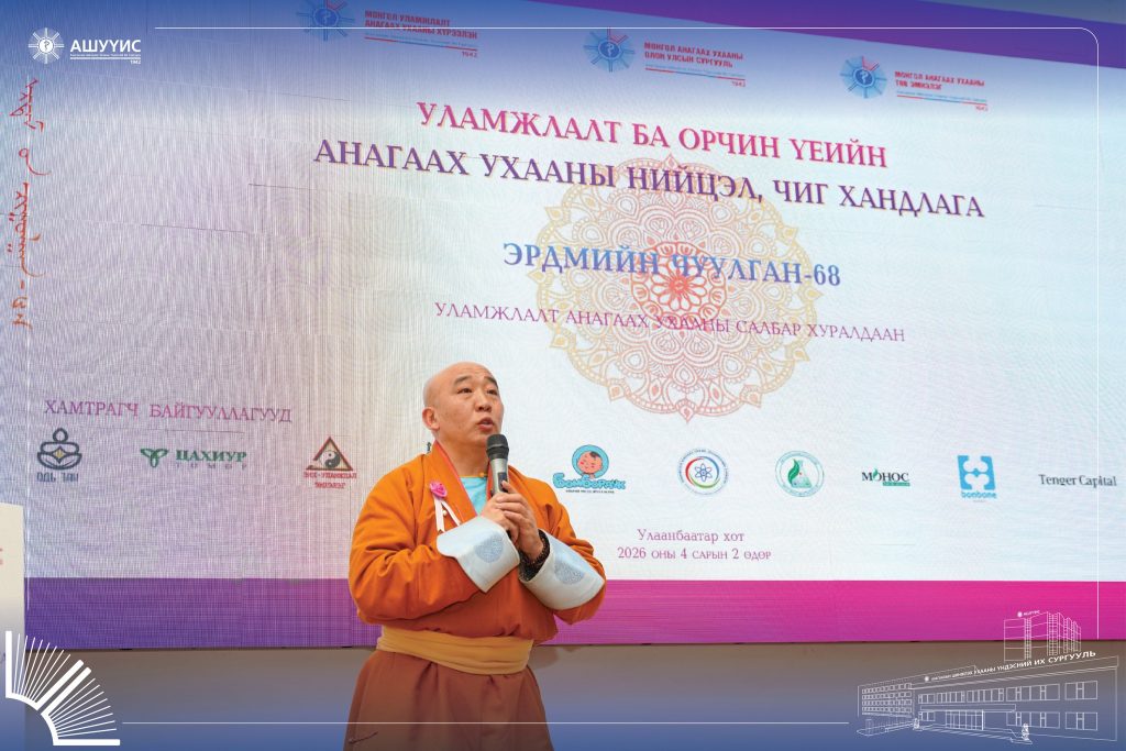 АШУҮИС-ИЙН “ЭРДМИЙН ЧУУЛГАН-68” УЛАМЖЛАЛТ АНАГААХ УХААНЫ САЛБАР ХУРАЛДААН АМЖИЛТТАЙ ҮРГЭЛЖИЛЖ БАЙНАBattsetseg DApril 3, 2026МЭДЭЭ, Мэдээ Previous Post “ЭРДМИЙН ЧУУЛГАН -68” АНАГААХ УХААНЫ САЛБАР ХУРАЛДААН АМЖИЛТТАЙ ЗОХИОН БАЙГУУЛАГДЛАА Next Post АШУҮИС-ИЙН “ЭРДМИЙН ЧУУЛГАН-68” СУВИЛАХУЙН САЛБАР ХУРАЛДААН АМЖИЛТТАЙ ҮРГЭЛЖИЛЖ БАЙНА