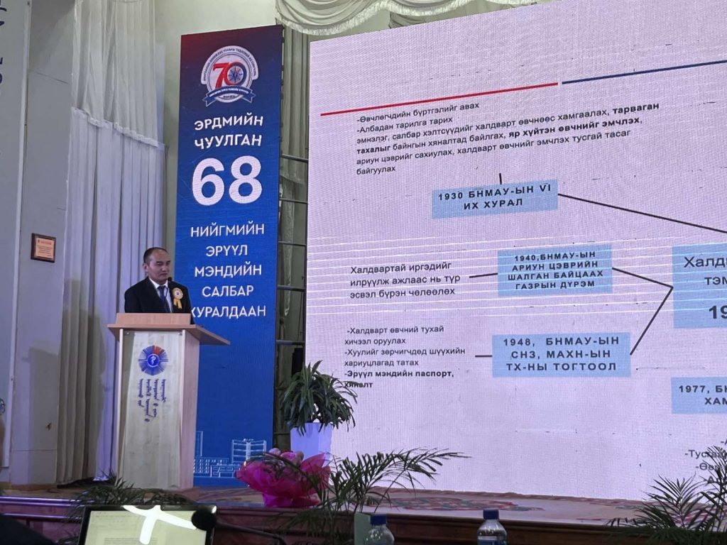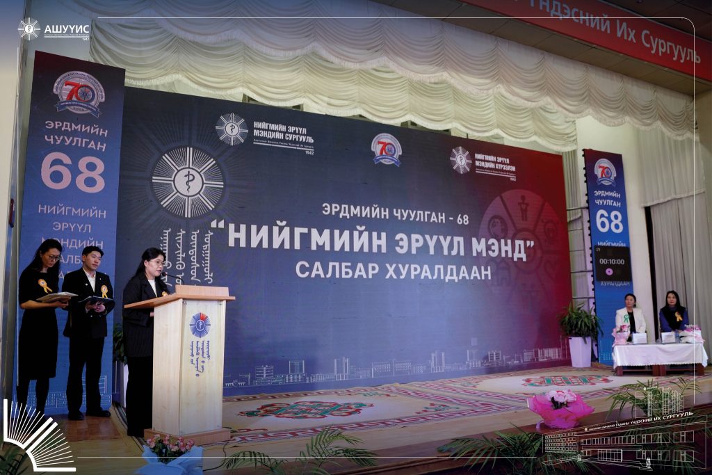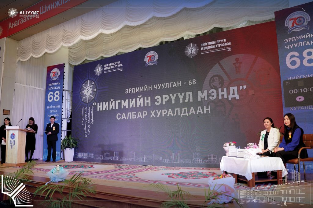 АШУҮИС-ийн “Эрдмийн чуулган-68”-ын хүрээнд “НИЙГМИЙН ЭРҮҮЛ МЭНД” салбар хуралдаан 2026 оны 04 сарын 03-ны өдөр амжилттай зохион байгуулагдлаа. Энэхүү чуулганы үйл ажиллагаа нь НЭМ-ийн сургуулийн түүхт 70 жилийн ойтой давхцаж байгаагаараа онцлог болж байна.