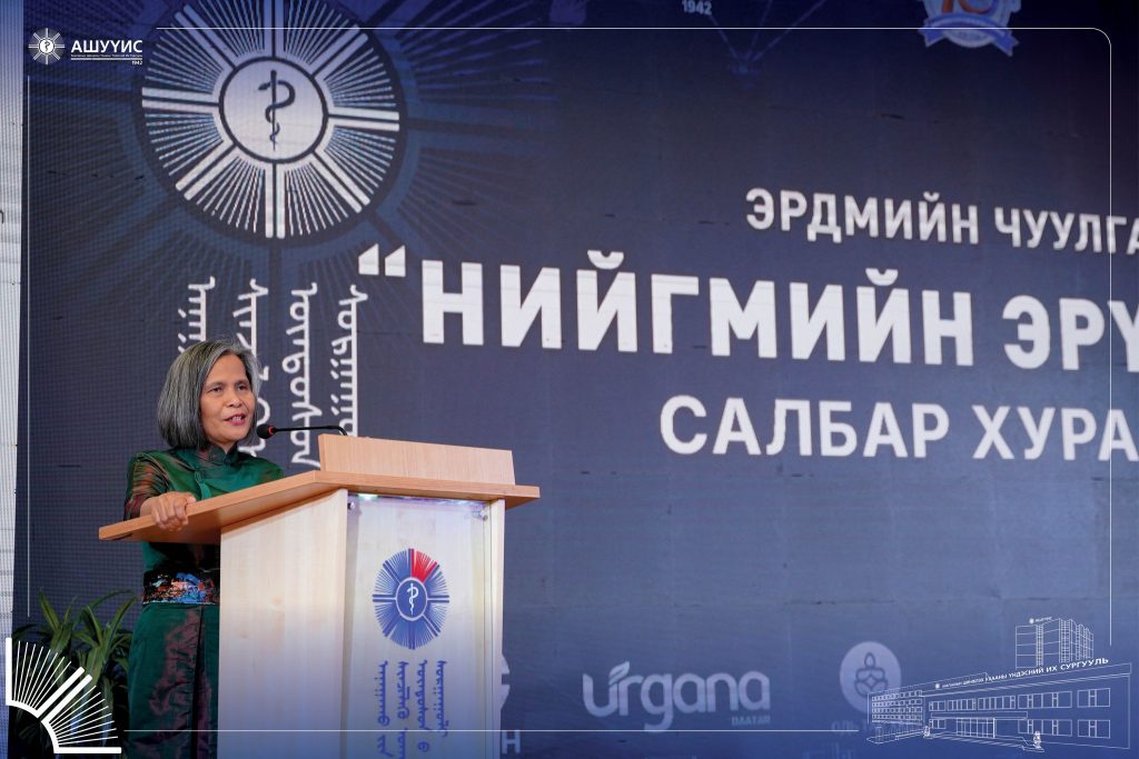 Мөн Монгол улсын ЭМЯ-аас хэрэгжүүлж буй “Нийгмийн эрүүл мэндийн бодлогын шинэчлэл”-ийн талаар АУ-ны доктор Б.Цэцэгсайхан илтгэж, төрийн бодлогын хэрэгжилт, нотолгоонд суурилсан тусламж үйлчилгээнд эрдэм шинжилгээ судалгааны ажлын ач холбогдлыг онцолсон юм.