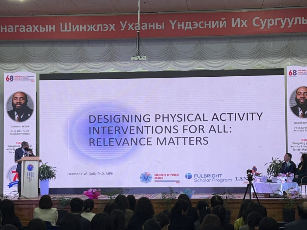 Түүнчлэн зочин илтгэгчдээр АШУҮИС дээр АНУ-ын Засгийн газрын тэтгэлгийн хүрээнд ажиллаж буй зочин профессор Desmond W.Delk хүн амын эрүүл мэндийг дэмжихэд “Идэвхтэй хөдөлгөөн”-ий ач холбогдлын талаарх шинэлэг мэдээлэл, сайн туршлагаас хуваалцлаа. АШУҮИС, НЭМС-ийн захирал, АУ-ны доктор, профессор Д.Даваалхам “Нийгмийн эрүүл мэндийн сургууль-70 жилд” сэдвийн хүрээнд тус сургуулийн түүхэн замнал, ололт амжилт, цаашдын зорилтын талаар танилцуулав. “Шинэ докторын илтгэл”-ээр АШУҮИС, НЭМС, Орчны эрүүл мэндийн тэнхимийн багш, АУ-ны доктор Э.Ундармаа “Улаанбаатар хотын агаарын бохирдлын урагт нөлөөлөх нөлөөг судалсан судалгааны зарим үр дүн” сэдэвт сонирхолтой илтгэлүүдийг тус тус танилцуулав.